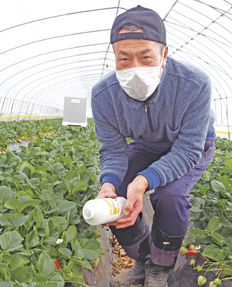 栃木県JAはが野いちご部会では、イチゴの害虫防除に主に5種類の天敵を使い分ける。即効性の有無、価格の高低なども踏まえ、その時点で効果的な天敵農薬を選定する体系を築く。天敵活用は果実の傷み軽減につながるとみて、積極的に使う生産者が増えている。