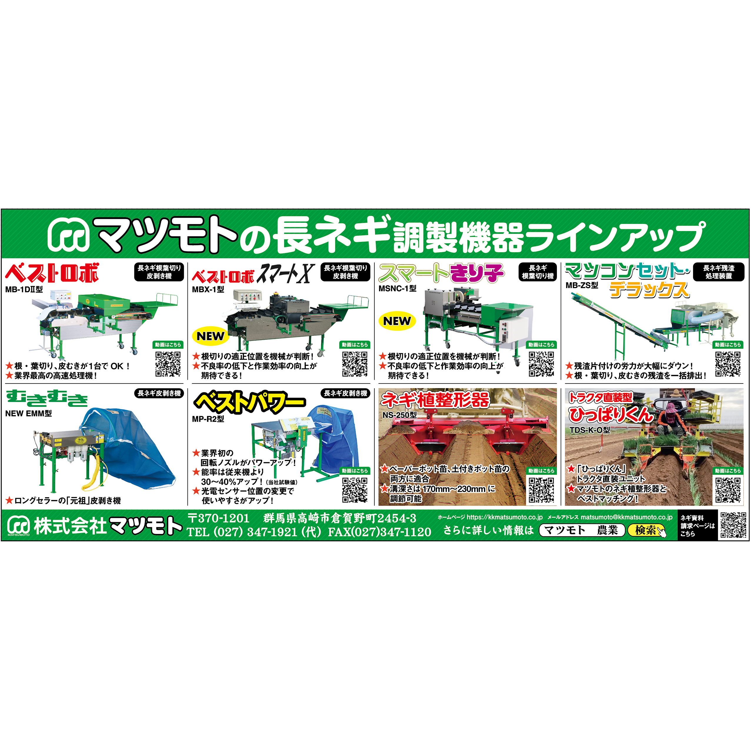 根深ネギ(白ネギ)の旬は秋から冬で、特に冬は鍋物商材として年間でも需要が高まる。近年は、夏季の高温や豪雨による、ネギの生育不良や病害虫の発生に多くの産地が悩まされている。本特集では、需要に応えるために福岡県で生産部会を立ち上げたJAたがわの取り組みや、秋冬向けネギの品種特性や動向、病害虫対策、産地へのアンケートなど最新情報を紹介する。