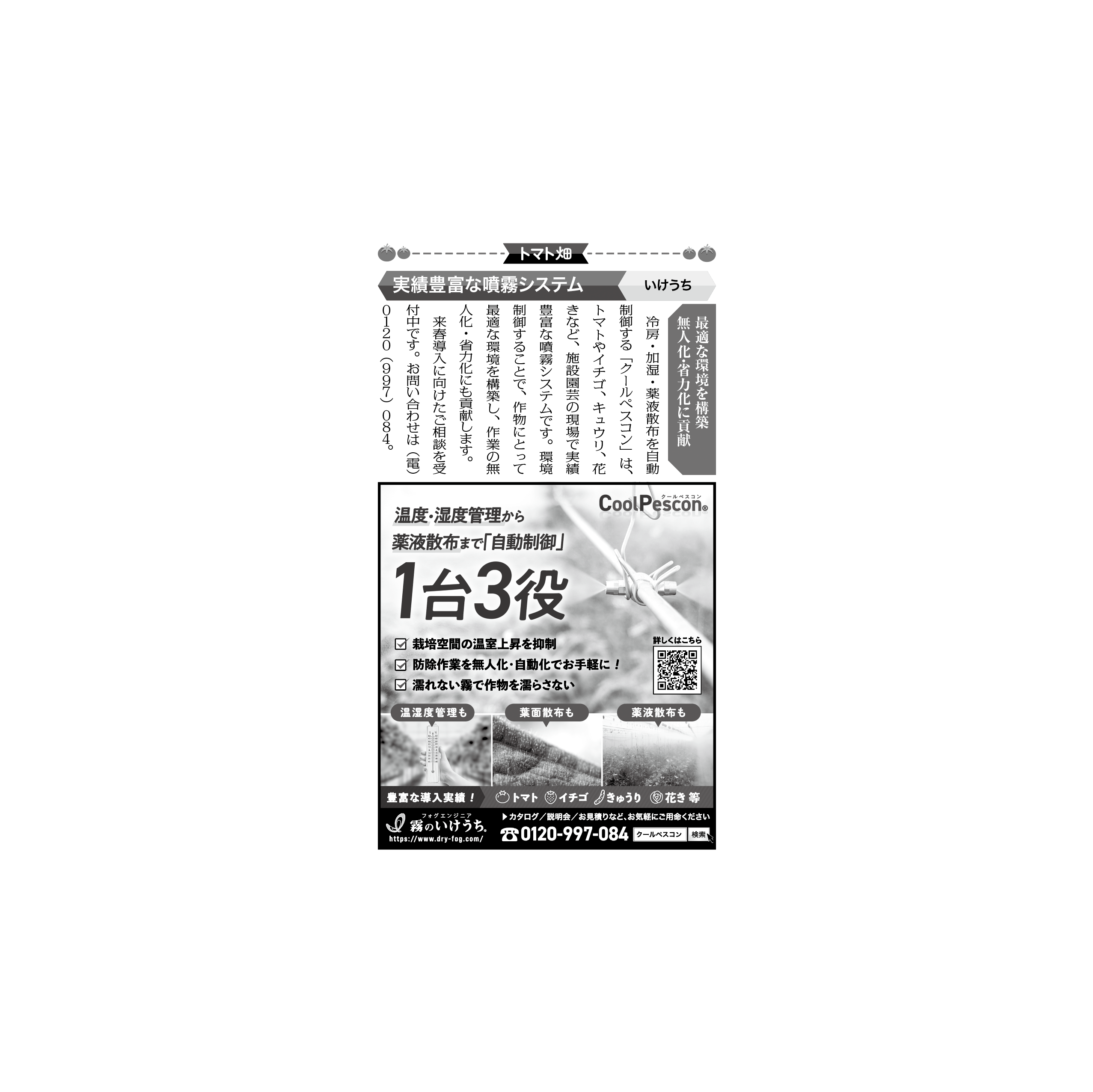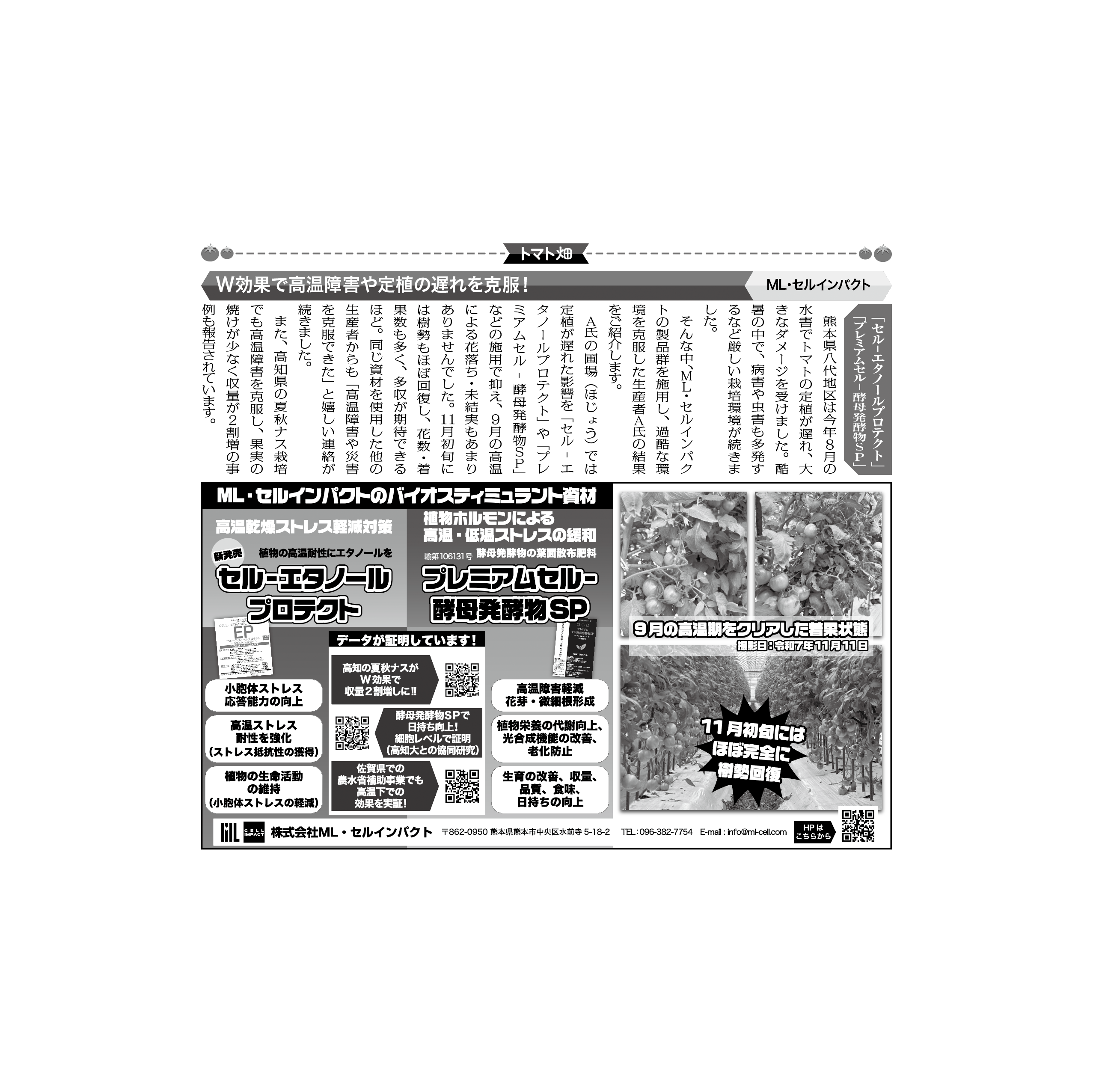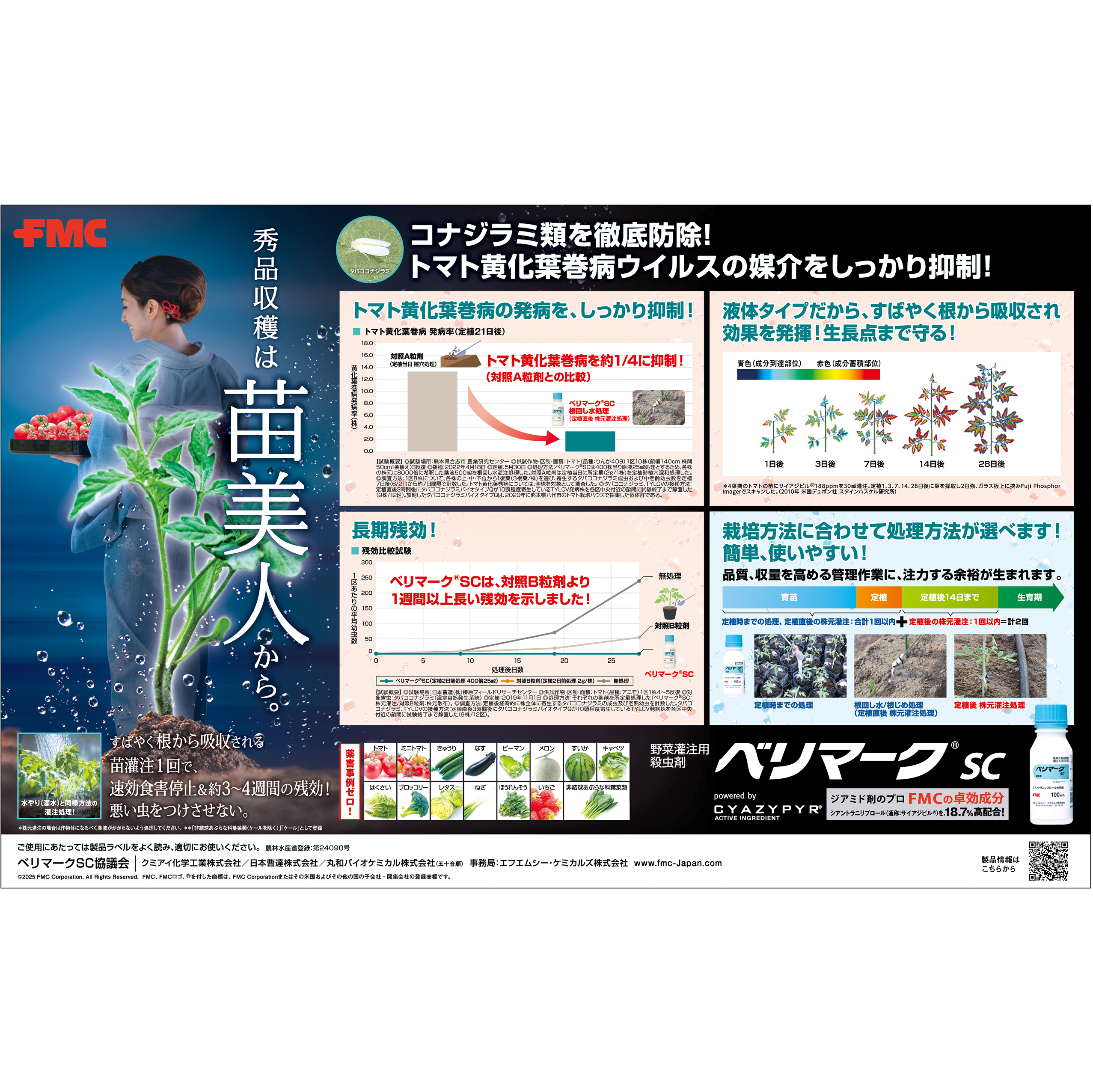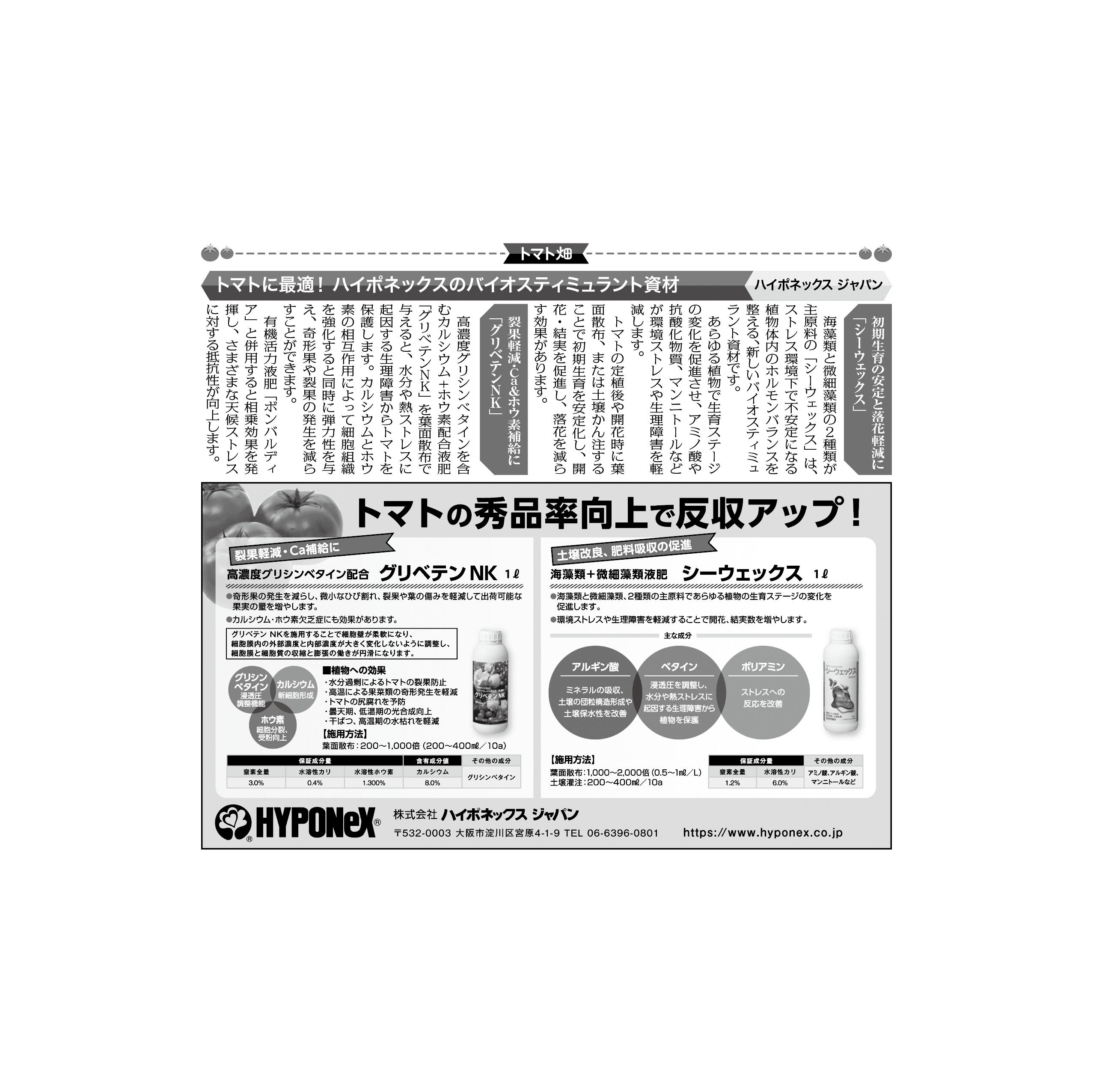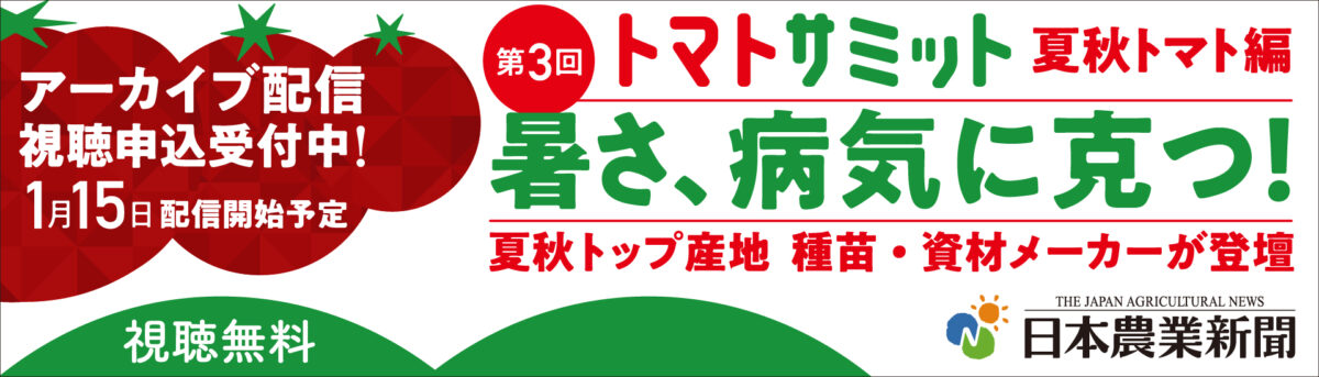 夏秋トマトの栽培は、厳しい猛暑などの影響で年々難しくなっている。トマトの日農平均価格(各地区大手7卸のデータの集計)は11月、入荷量の減少で不足感が高まり、大玉・ミニともに過去最高を更新した。本特集では、厳しい環境下でも2年連続でトマト販売額過去最高を更新した岐阜県・JAひだの取り組みや、耐病性などが一目で分かる最新品種リスト、暑さ対策や流通トレンドなどを紹介。関連企画として、JAひだや種苗・生産資材メーカーが登壇する「第3回トマトサミット」を12月19日に開催する。